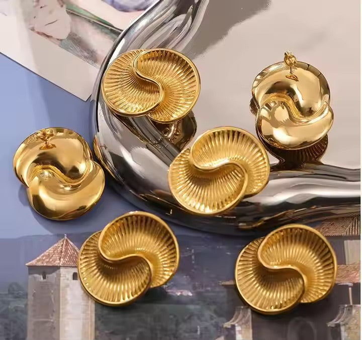 Buy NowA harmonious blend of elegance and fluidity. Crafted with precision, these earrings capture the essence of graceful movement with their wave-inspired design. Made from high-quality materials, they shimmer with a golden glow, adding a touch of sophistication to any look. Perfect for those who love timeless beauty with a modern twist.
