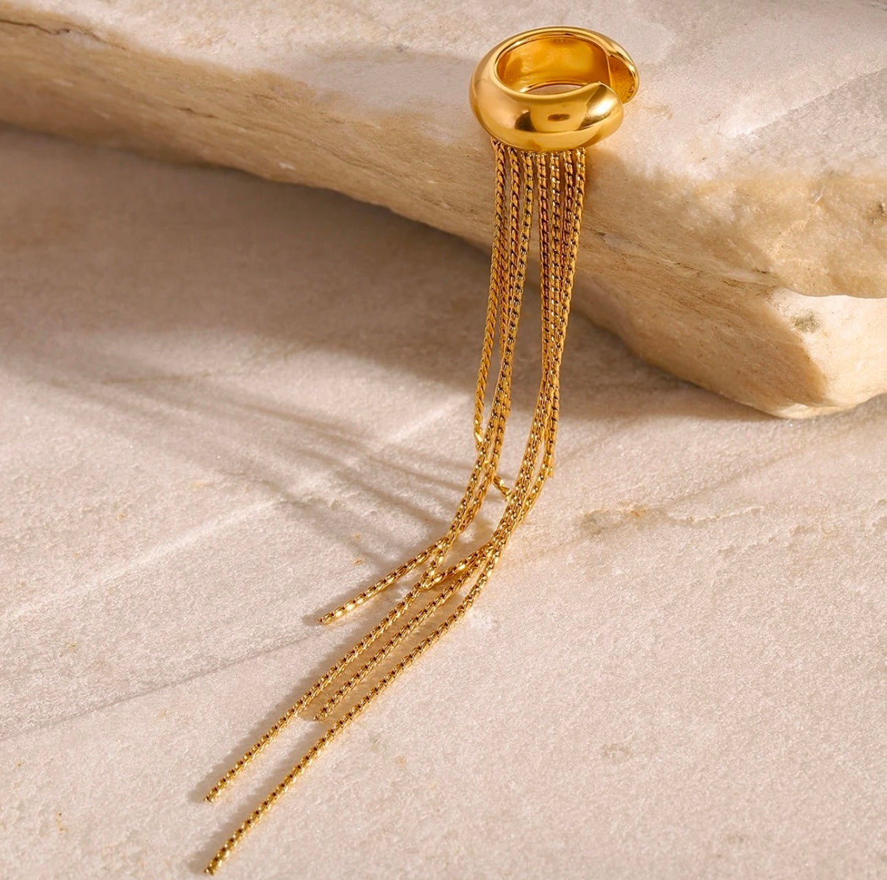 Buy Nowa stunning dangler cuff that combines elegance and boldness in one design. With a series of delicate elements flowing in a cascading pattern, this cuff creates a striking, layered effect that adds modern glamour to any look. Perfect for those who want to stand out with sophistication.