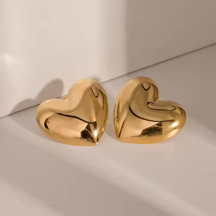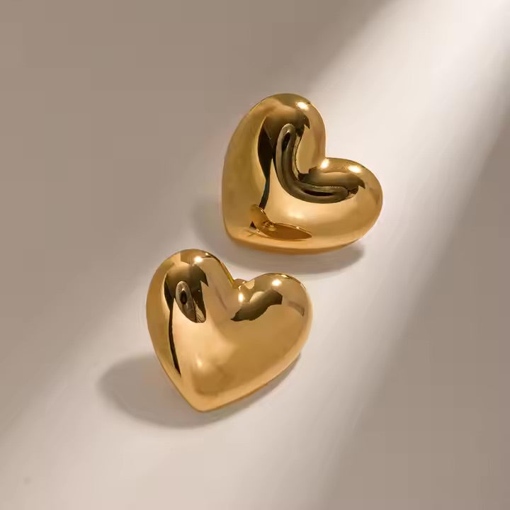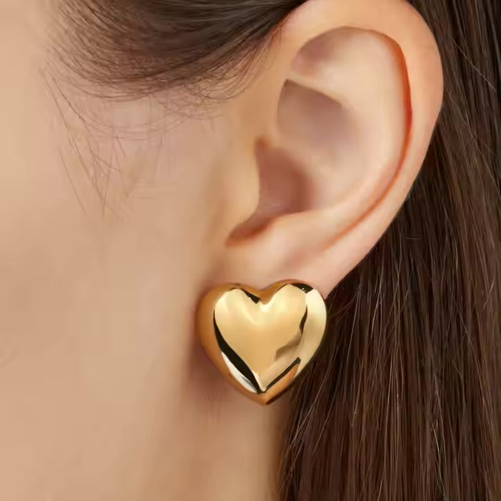Buy NowMake a statement with these captivating heart earrings. Sculpted into a smooth, oversized silhouette, these earrings exude modern elegance with a touch of playful charm. Their bold design instantly elevates any outfit, adding a touch of romance and intrigue.