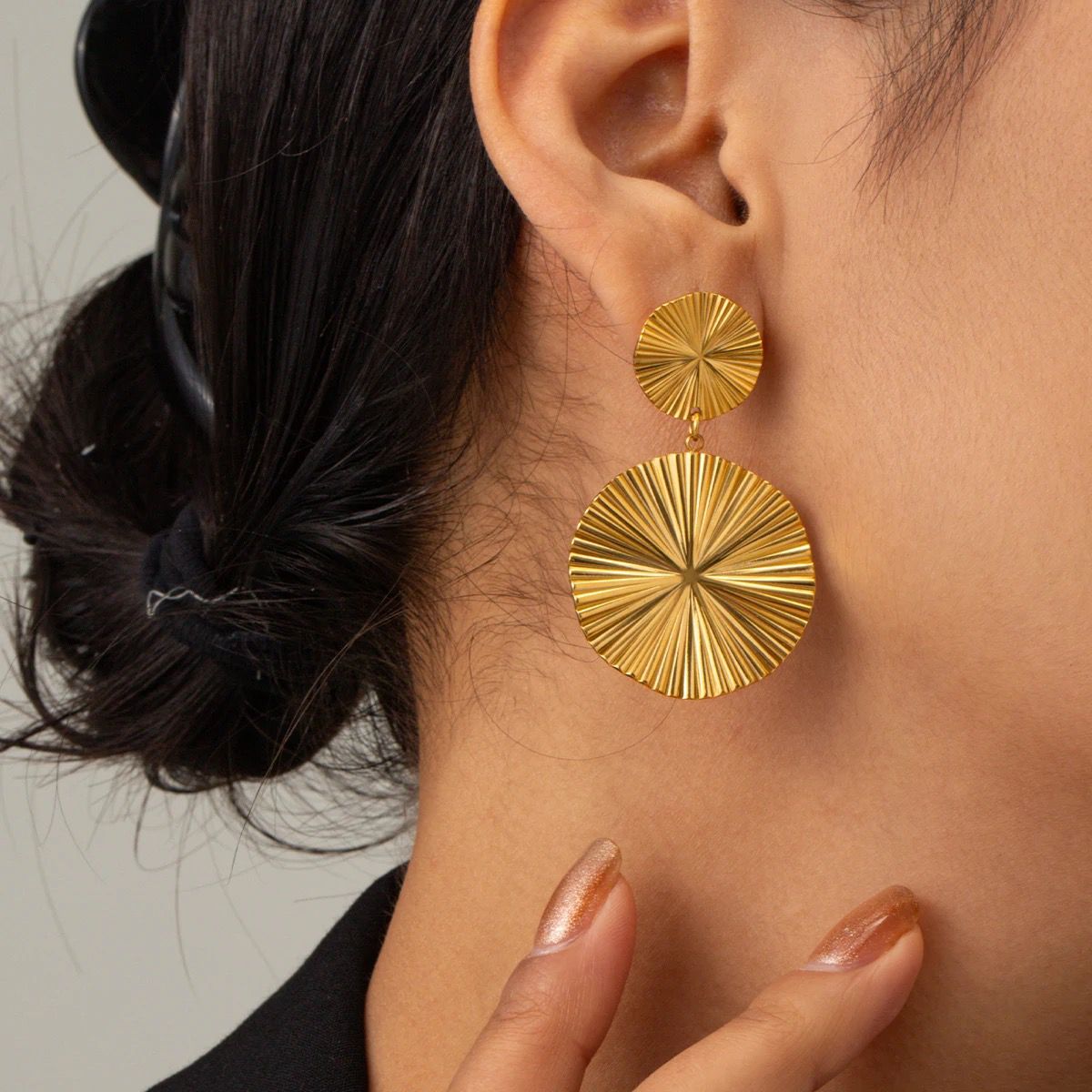 Buy NowThe Spiral Dance Earrings feature two cascading spiral circles, symbolizing harmony and movement. Bold yet graceful, they add a touch of modern charm to any outfit.