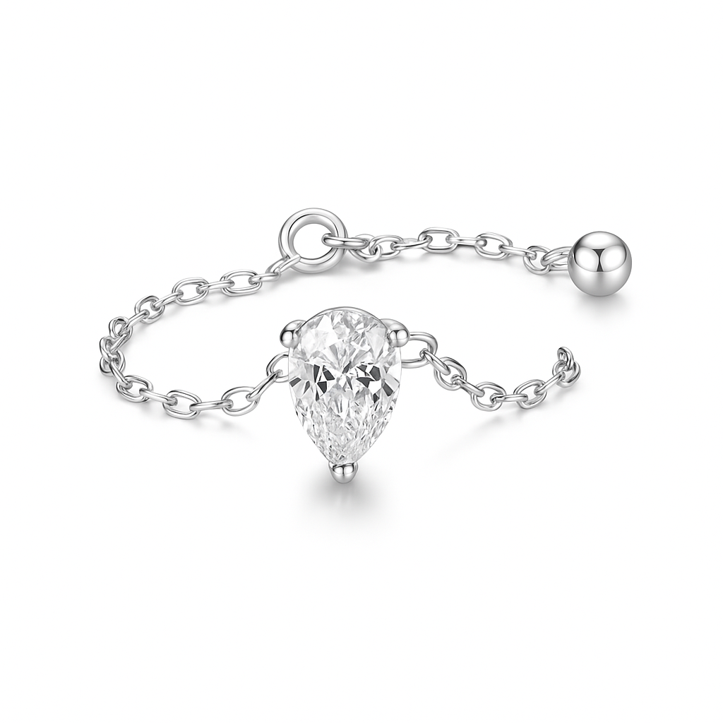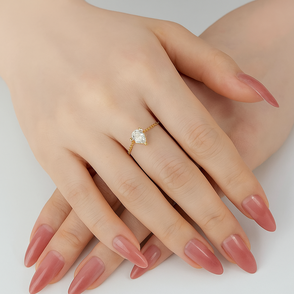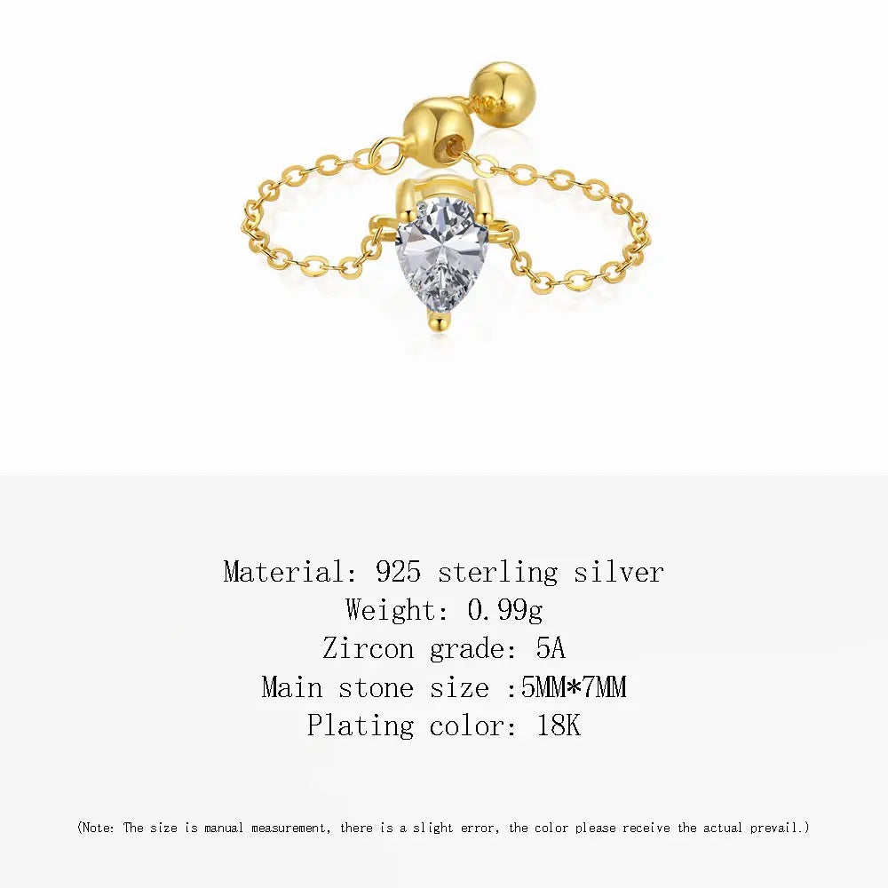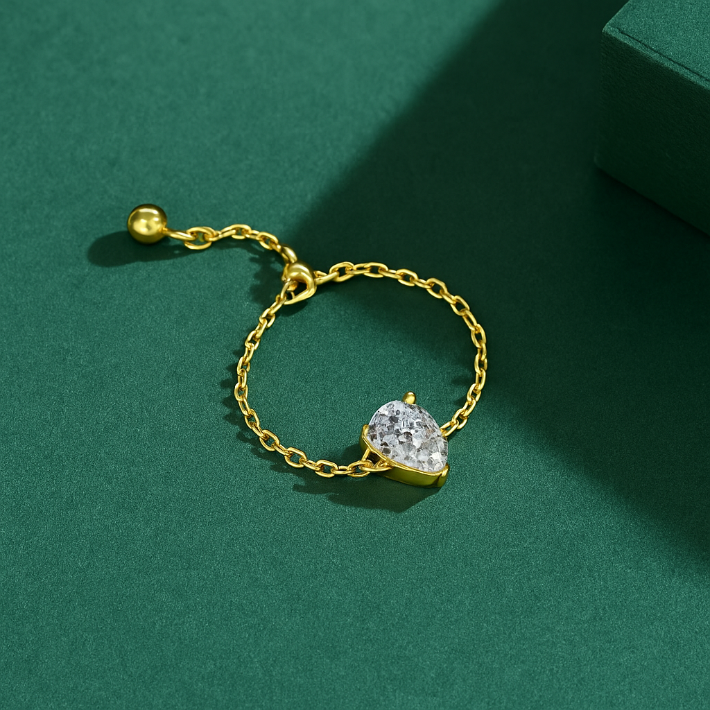 Buy NowDelicate and dazzling, this 18K gold-plated ring features a pear-shaped 5A zircon set on a fine chain band. Made from 925 sterling silver, it’s lightweight, hypoallergenic, and perfect for everyday elegance.