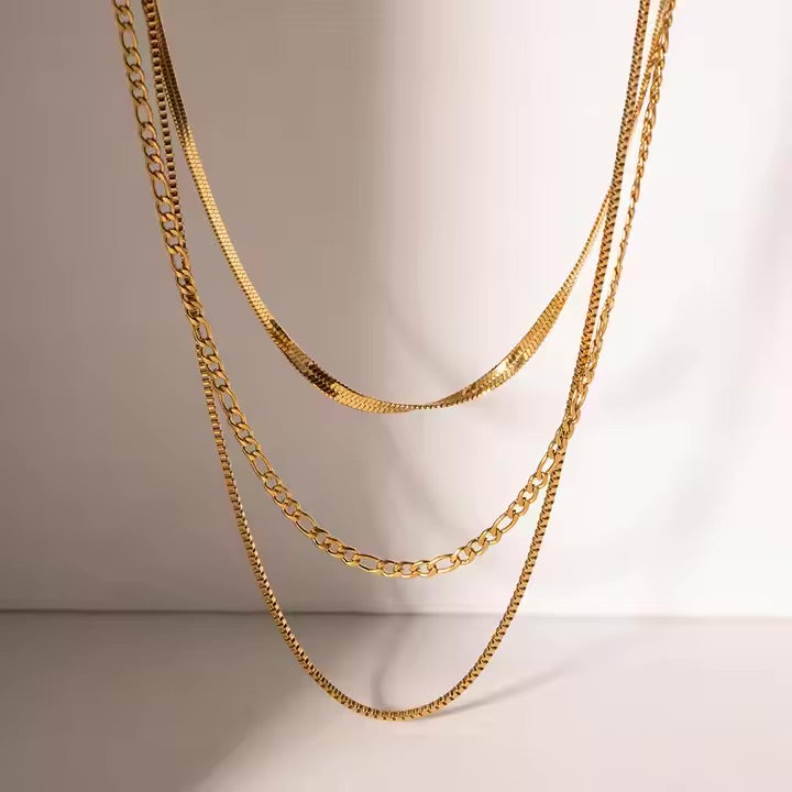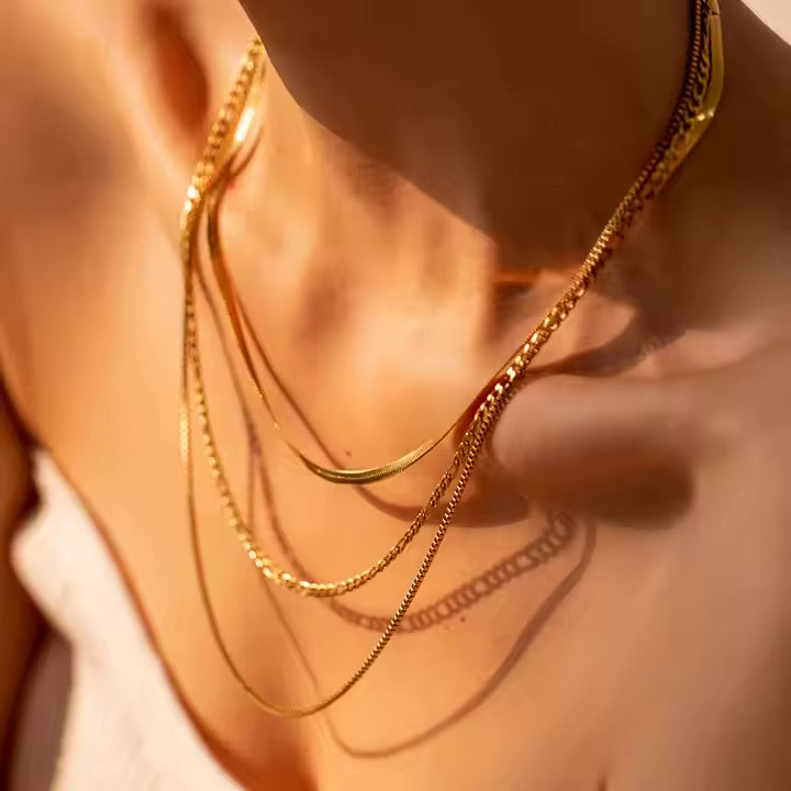 Buy NowThe Trio Cascade necklace is a statement piece that commands attention. Featuring three delicate chains of varying lengths, this necklace creates a graceful, cascading effect that drapes beautifully across the collarbone, adding a touch of elegance and individuality